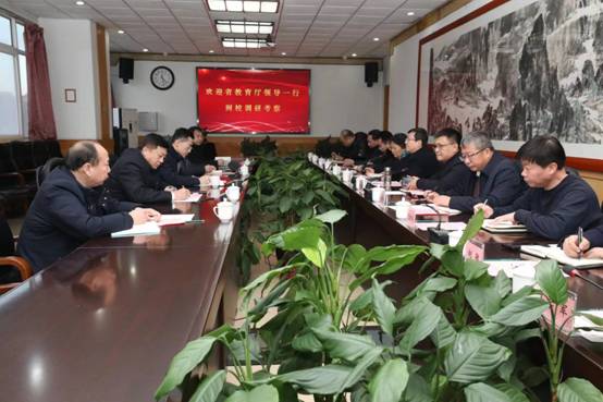 2023年12月26日下午,河北省教育厅副厅长张春生、省职成教处副处长邢文海,秦皇岛市教育局局长肖凤利、副局长孟凡功、高等教育与职成教科长孙文举一行5人到我校调研指导工作。校领导朱勇、郭旭涛、杨越冬、蒋爱林、刘荣昌出席座谈会并陪同调研。