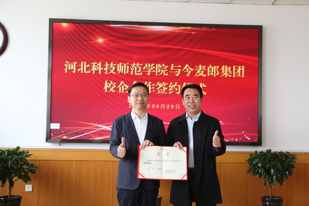 校党委常委、副校长冯瑞银与今麦郎集团王高峰共同签署了校企合作协议,并举行了实践教学就业基地和人才培训基地揭牌仪式。