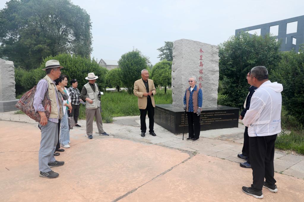 5月21日上午,丁秀珍一行到原秦皇岛煤炭工业管理学校(前身为秦皇岛煤矿工人学校)旧址参访,先后到“秦皇岛煤校旧址”纪念碑、原学校办公及教学区、学生宿舍区等地观访并在曾经住过的学生宿舍前留影。在写有“勤俭办学1958.7.1学生自建”宿舍前,丁秀珍校友深有感触地说:“我们都曾经参加过建设校园的劳动。当时实行‘劳卫制’,每天下午两节课后都要进行劳动和体育锻炼,正是学校的悉心培育,才掌握了工作技能,也潜移默化养成了敢于面对生活苦难的勇气”。我校老领导、原秦皇岛煤校党委书记宋绍富同志提前与柳江地学博物馆的同志进行联络接洽并陪同进行观访。