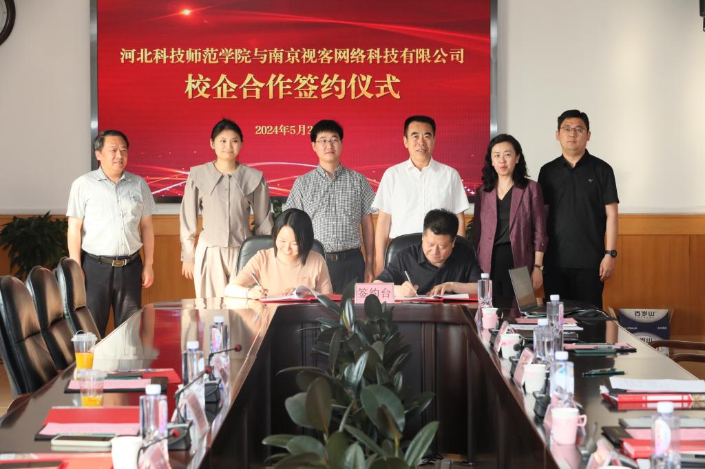2024年5月28日,我校与南京视客网络科技有限公司举行了校企合作签约暨基地揭牌仪式。学校党委常委、副校长冯瑞银,党委常委、副校长刘荣昌,南京视客网络与科技有限公司副总经理、组织与人力资源部负责人缪继红、眼镜圈运营部业务负责人张丹枫、组织与人力资源部COE朱茜茹出席活动。学校教务处、招生就业处、数学与信息科技学院负责同志参加活动。签约仪式由招生就业处负责同志主持。