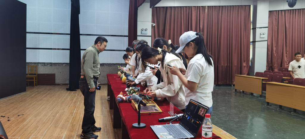 刘英哲老师以《大美非遗,生活即道》为题,从文化遗产的介绍、非遗走进校园以及非遗融入现代生活等方面进行了讲解,用通俗易懂的方式传达非遗之美,通过一件件传统文化元素和现代生活相结合的非遗作品,展示了非遗中精湛的技艺,让同学们领略了民族文化和中华文化独特的魅力。