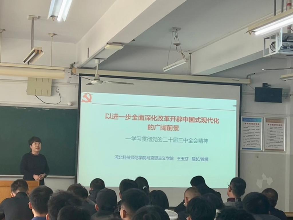 为深入学习宣传贯彻党的二十届三中全会精神,引导师生自觉担当新时代的责任与使命,2024年10月31日,体育与健康学院邀请我校思想政治理论教育宣讲团成员、马克思主义学院院长王玉芬教授为学院作“党的二十届三中全会精神”专题宣讲报告。学院师生党员及学生代表120余人聆听了报告。