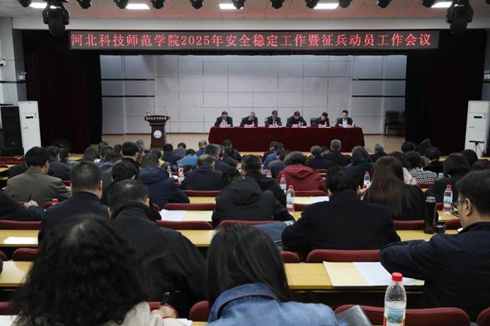 2025年3月21日,我校在秦皇岛校区多功能厅召开2025年学校安全稳定工作暨征兵动员工作会议,校领导孙政、王松、蒋爱林、冯瑞银、刘荣昌、马爱林出席会议,全校中层领导干部参加会议。会议由马爱林主持。