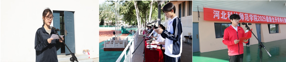 教师代表工商管理学院赵春霞副教授、化学工程学院韩璐副教授、机电工程学院耿丽君博士,在校生代表体育与健康学院刘久一同学、园艺科技学院路莉芸、教育学院王一同学分别发言,对新同学给予殷切期望和祝福。新生代表财经学院冯晓宁同学、海洋资源与环境学院蔡璠遥同学、艺术学院姚敬淳同学在发言中表达了加入科师的喜悦之情,表示将用四年的奋斗与拼搏,书写无愧于自己、无愧于时代的青春记忆。