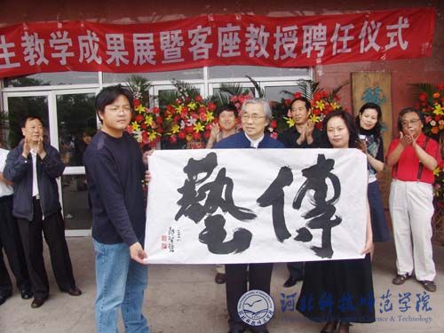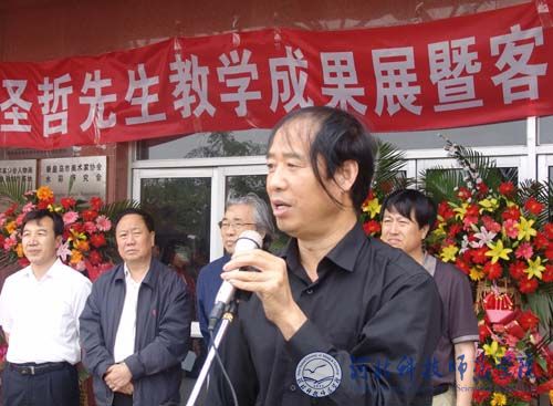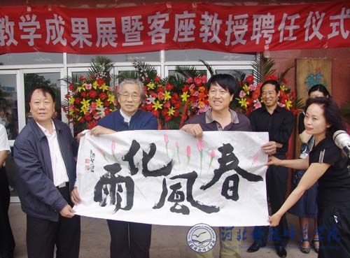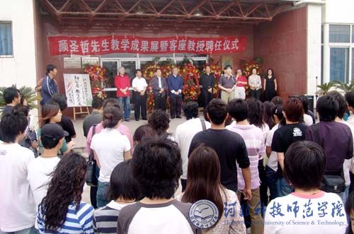 2008年6月6日上午,颜圣哲先生教学成果展暨客座教授聘任仪式在我校开发区校区举行。秦皇岛市政府台湾事务办公室主任廉茹艳、副主任董景龙,秦皇岛市文联主席牛兴国,秦皇岛市文联副主席、美术家协会主席吴桂平,秦皇岛市文联副主席、中国画研究会会长张国兴,秦皇岛市广播电视局副局长高瑞华,我院党委副书记、院长汤生玲,党委副书记陈继生,学院党委宣传部、统战部部长赵宗宝,艺术系主任张海燕、党总支书记李玉华、副主任刘进成及我校艺术系师生200余人参加了教学成果展暨客座教授聘任仪式。