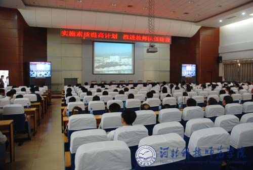 图为与会代表在观看我校《实施素质提高计划,推进教师队伍建设》宣传片
