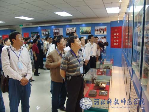 图为与会代表参观我校展厅