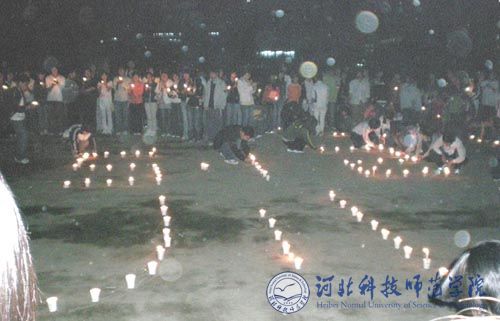 5月24日晚,我校农学系全体大学生在昌黎校区运动场上开展了为四川灾区受难同胞“烛光祈福”活动。