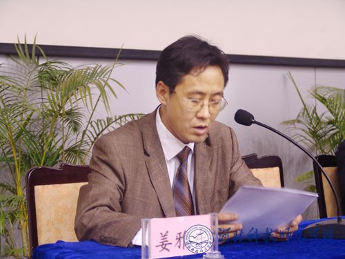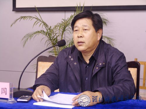 图为人事处处长高书国同志在会上作关于我校人事制度改革的相关问题说明