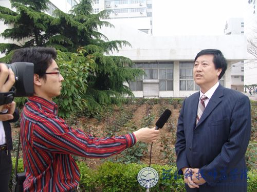 图为我校汤生玲院长正在接受秦皇岛电视台记者采访