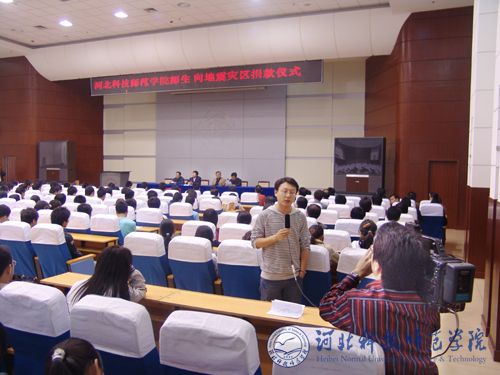 截止2008年5月16日上午9:00,我校为地震灾区捐款已达35.72764万元。河北电视台、秦皇岛电视台、秦皇岛晚报等多家媒体对我校为地震灾区捐款活动和对在校的震灾地区籍学生的慰问救助工作进行了专题报道。
