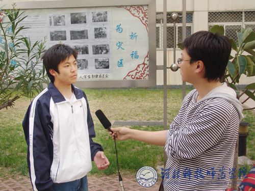 图为我校四川籍学生正在接受秦皇岛电视台记者采访