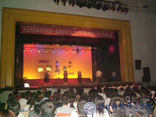 2008年 5月9日晚7:00,由党委学工部、学生处、团委主办,学校学生会承办的我校第十四届校园文化艺术节开幕式暨第九届“海之韵”现代舞大赛在昌黎校区大学生文化活动中心隆重举行。校区办公室主任刘卫东,学工部部长、学生处处长张福喜,学报编辑部主任赵友,化学系党总支书记段立华,机械电子系党总支书记冯瑞银,教育系党总支书记唐代清,学工部副部长、团委书记李艳坡,工会副主席李佩忠,农学系党总支副书记、副主任高玉峰,数理系党总支副书记、副主任贠小波出席了开幕式。学生处、团委及各系团总支书记、学工办主任等到场观看比赛。