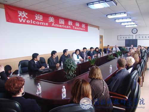 5月3日下午5:30,汤生玲院长在我校秦皇岛校区11楼1号会议室举行了欢迎仪式,并召开座谈会。汤生玲院长对美国ELT组织教师团一行的到来表示热烈的欢迎和衷心的感谢。汤院长简要介绍了我校所处滨海旅游城市,同时也是2008年北京奥运会的协办城市—秦皇岛概况和我校现状及未来发展情况,并预祝美国ELT组织所有成员在我校开展为期一周的英语教学周活动取得圆满成功。