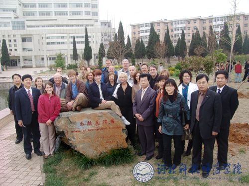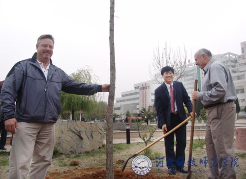 5月3日下午5:00,“国际友谊园”在我校秦皇岛校区曦园正式建成。建园仪式上,中美双方代表共同开展了植树活动。校领导汤生玲、房海及武士勋、宋士清等相关部门负责同志与美国ELT组织教师团成员共同栽下象征中美双方长久友谊的“银杏树”,对进一步增进中美两国人民之间的友谊,大力提高我校的英语教学水平奠定了良好的基础。植树活动结束后,双方成员共同在“国际友谊园”岩石上合影留念。