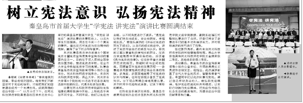 秦皇岛日报:秦皇岛市首届大学生“学宪法 讲宪法”演讲比赛圆满结束-金沙67783检测路线