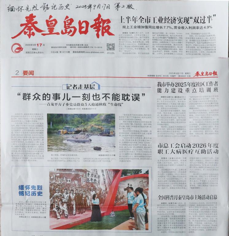 《秦皇岛日报》2025年9月17日宣传报道