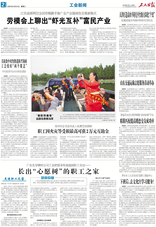 2025年6月24日《工人日报》第二版,工会新闻版宣传报道