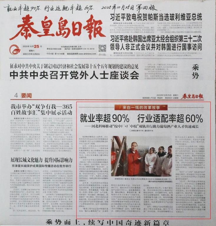10.292025《秦皇岛日报》:就业率超90% 行业适配率超60%【食品科技学院暨葡萄酒学院】