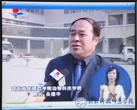 图为我校动物科技学院院长吴建华教授接受秦皇岛电视台记者采访