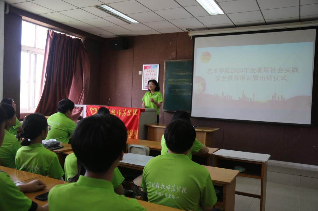 7月14日,艺术学院举办2023年度暑期社会实践安全培训暨团队出征仪式,“艺心艺意”“天使筑梦”两个省级立项实践团队全体队员和指导老师参加了仪式。