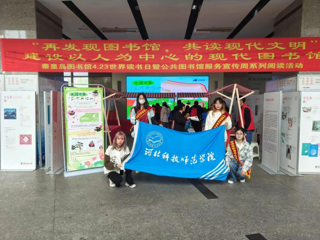 2024年4月23日起外国语学院以世界读书日为契机,组织志愿者前往秦皇岛市图书馆广泛开展系列阅读文明实践活动。用志愿力量引导市民群众读好书、好读书,让书香“味”浸润百姓心田。