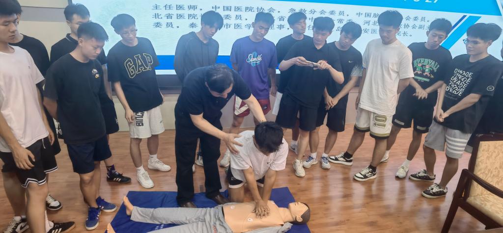 2024年6月27日,体育与健康学院开展“应急安全救护”专题讲座,秦皇岛市公安医院副院长徐俊祥应邀作讲座,学院党委副书记主持,辅导员班主任、2023级学生、其他年级班委以及研究生参加讲座培训。