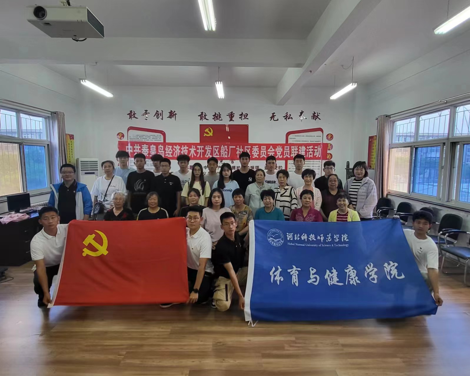 2024年7月4日,体育与健康学院学生第二党支部前往秦皇岛经济技术开发区船厂社区开展党员联建活动。支部书记、在校学生党员及船厂社区党员代表参加联建活动。