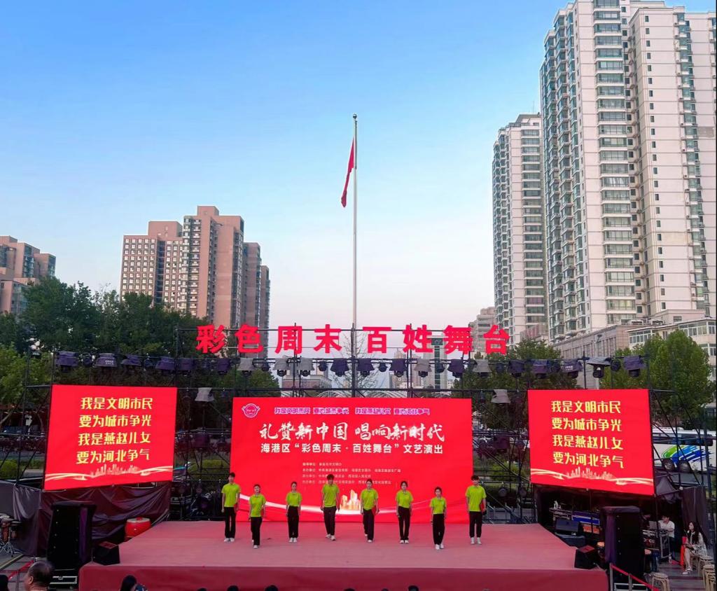 近日,海港区“彩色周末,百姓舞台”西港镇专场文艺演出在新世纪公园隆重举行,工商管理学院“新青年”思想宣传实践团参加此次演出,该活动由中共海港区委宣传部、海港区文明办、海港区旅游文广局主办,已经成为海港区群众文化的活动品牌。