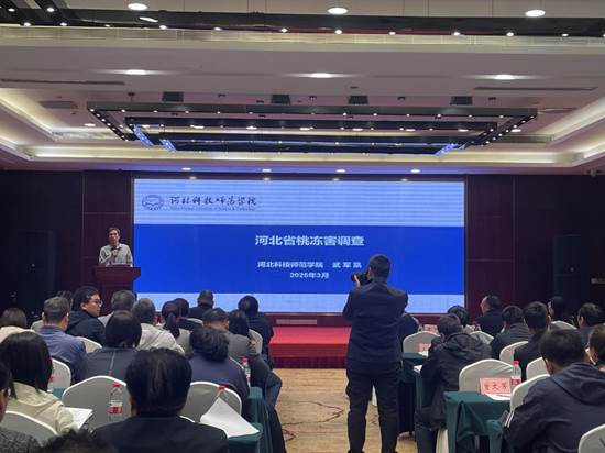 河北省现代农业产业技术体系桃创新团队积极参与其中,团队的 26 位成员深度融入这场学术盛会,大家与国家桃产业技术体系首席科学家姜全研究员以及岗站科学家王力荣研究员、王志强研究员、俞明亮研究员、叶正文研究员、彭福田教授等进行了深入交流,经过交流大家在种质资源、性状遗传、功能基因、品种选育、栽培技术、加工工艺、贮藏保鲜、果园机械、病虫防控、果品安全、品牌建设等多个关键领域拓宽了视野,为后续团队工作的高效开展提供了新思路与有力参考。会议期间,河北省桃创新团队生物育种与良种区域化岗位专家、我校武军凯教授以“2024年河北省桃树冻害调查与结果分析”为题,深入剖析了桃树冻害问题,为桃产业品种提供了重要参考。