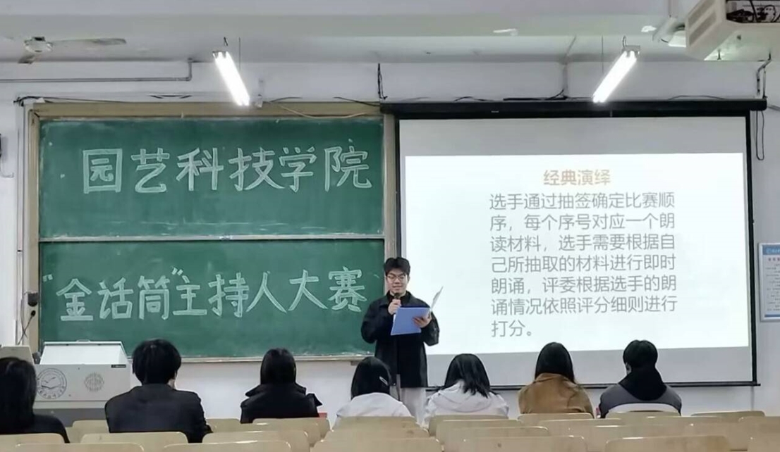 3月31日,园艺科技学院举办“逐梦青春、声动未来”金话筒主持人大赛。