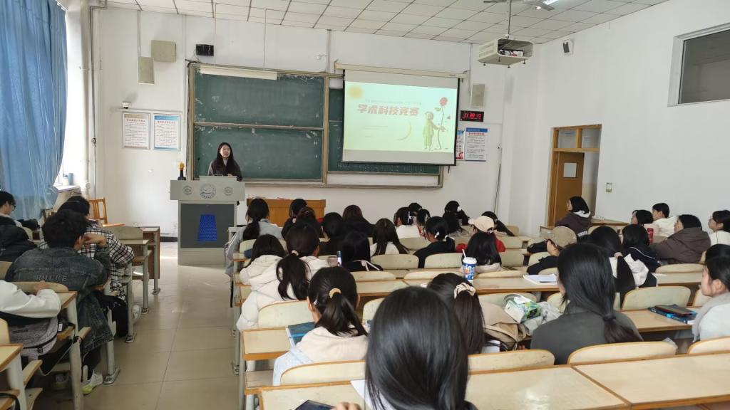会上,赵紫诺以“砥砺精进 创新致远”为主题,系统分享了竞赛收获、类别及备赛策略。她带领同学们观看答辩视频,体验竞赛答辩场景;随后,结合具体案例,深入讲解选题技巧、策划书撰写细节,着重强调 PPT 与策划书的差异,鼓励同学们勇敢尝试,丰富个人经历。答疑环节中,同学们踊跃提问,赵紫诺耐心细致地逐一解答。最后,辅导员总结学科竞赛要点,鼓励同学们要积极参与,并表达了对大家在竞赛中斩获佳绩的美好期许。