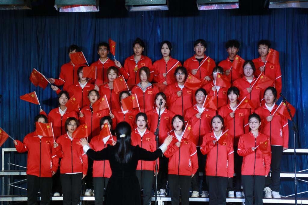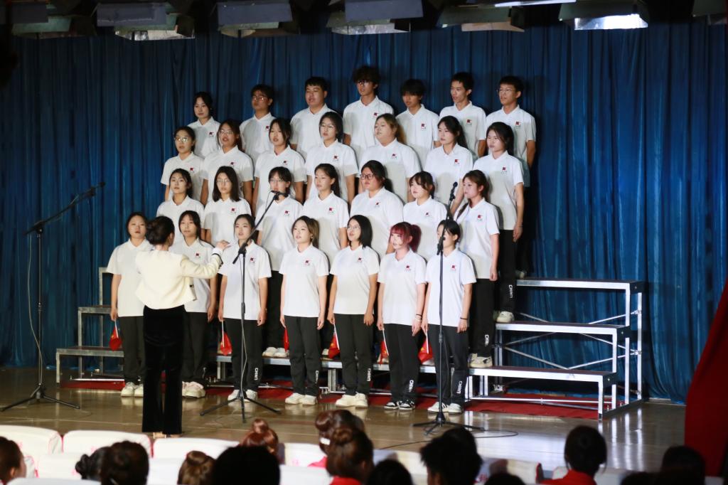 演出中,各团队的创意设计更是亮点纷呈,鲜红的小红旗挥舞如潮,醒目的条幅熠熠生辉,这些道具与歌声完美融合,为表演更添氛围。各队指挥身姿挺拔、神情专注,用精准有力的肢体语言、灵动传神的眼神动作,引领着整个团队的节奏与情感,成为舞台上一道亮丽的风景线。