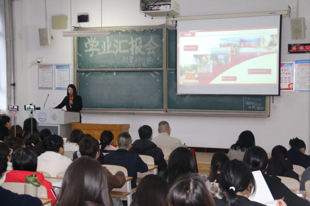 近日,根据学校《大学生自主发展规划实施方案》文件精神,财经学院财务管理2401班进行了大学生学业发展规划汇报会。大学生自主发展规划是同学们对自己大学四年乃至更长远的人生进行主动思考、设计、执行和调整的动态管理过程。相关领导、老师现场观摩了本次活动,学生家长通过网络直播在线上观看了此次学业汇报会。