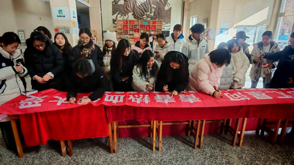 活动分为精神宣讲和集体签名两个环节。12月1日至4日,志愿者分组走进学院各班级,围绕秦皇岛市党义爱心团队的先进事迹开展宣讲,深入阐释无私奉献、团结协作的志愿精神内涵,并向广大青年学子发出勇担社会责任的积极号召。真挚动人的讲述让同学们深刻体会到志愿精神的核心,进一步强化了感恩社会、践行使命的责任意识,引发了强烈共鸣。12月5日当天,学院青年志愿者协会组织同学们在“志愿微光汇星河,青春热血传大爱”主题条幅上郑重签名,以落笔之刻铭记奉献初心、许下传递大爱的坚定承诺。