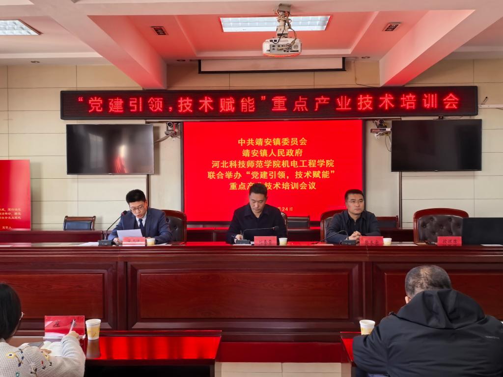 2025年12月24日,为深入贯彻落实党的二十届四中全会精神,科学谋划“十五五”时期高质量发展新路径。机电工程学院与昌黎县靖安镇党委联合举办“党建引领·技术赋能”重点产业技术培训会。机电工程学院党委副书记宋冬冬,副院长林红举,靖安镇党委书记刘春雷,党委副书记、镇长张友安等出席活动,河北安丰钢铁集团有限公司等二十余家镇域重点企业的负责人和技术骨干参加培训。