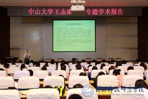 2013年9月26日下午,中山大学王志康教授在我校秦皇岛校区学术交流中心作了题为“进化论、道德与人类社会发展”的学术报告。校党委常委、纪委书记李榕和研究生、本科生400多人聆听了学术报告。报告由科研处处长闫立英主持。