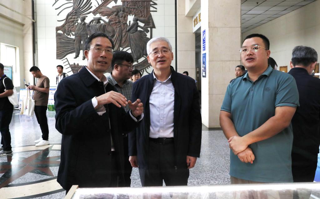 学校党委书记孙政,党委常委、纪委书记郑新同媒体记者亲切交谈