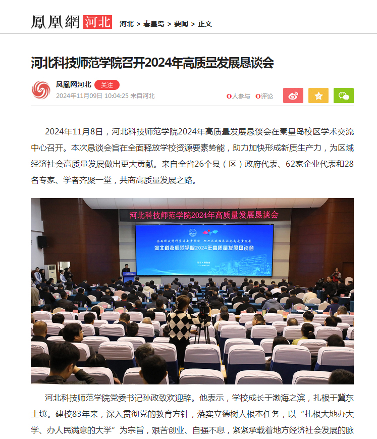 2024年11月9日,凤凰网以金沙67783检测路线召开2024年高质量发展恳谈会为题,报道了我校2024年高质量发展恳谈会隆重举行盛况。